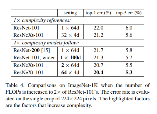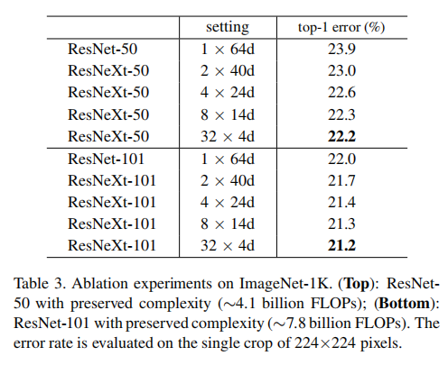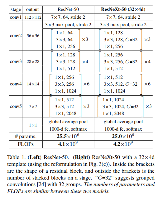 论文给出了ResNetXt-50(32x4d)的参数,和ResNet-50拥有相近的复杂度