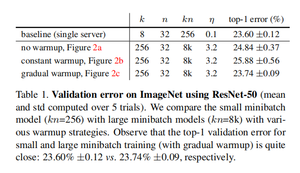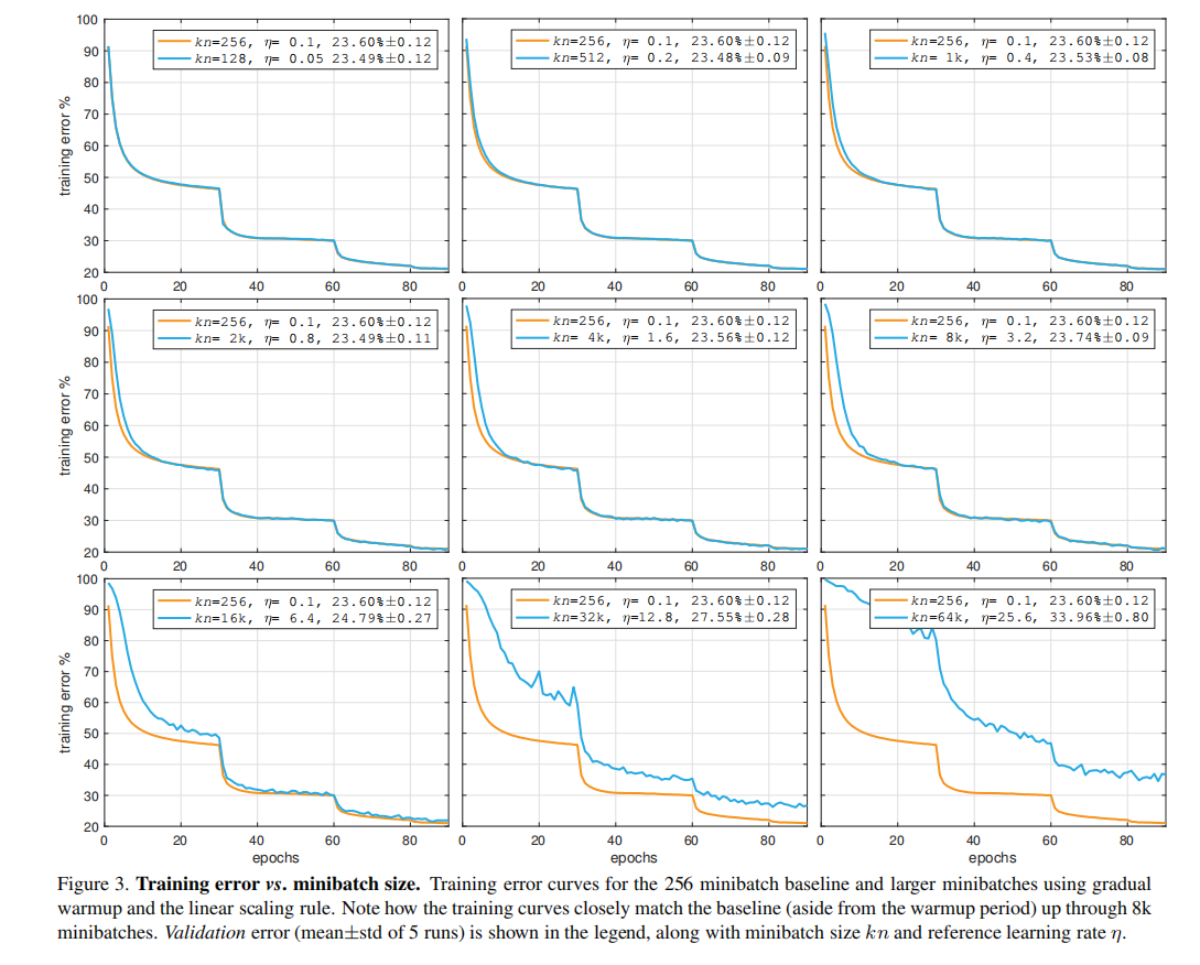 论文比较了不同的学习率训练结果,证明了线性缩放规则的有效性