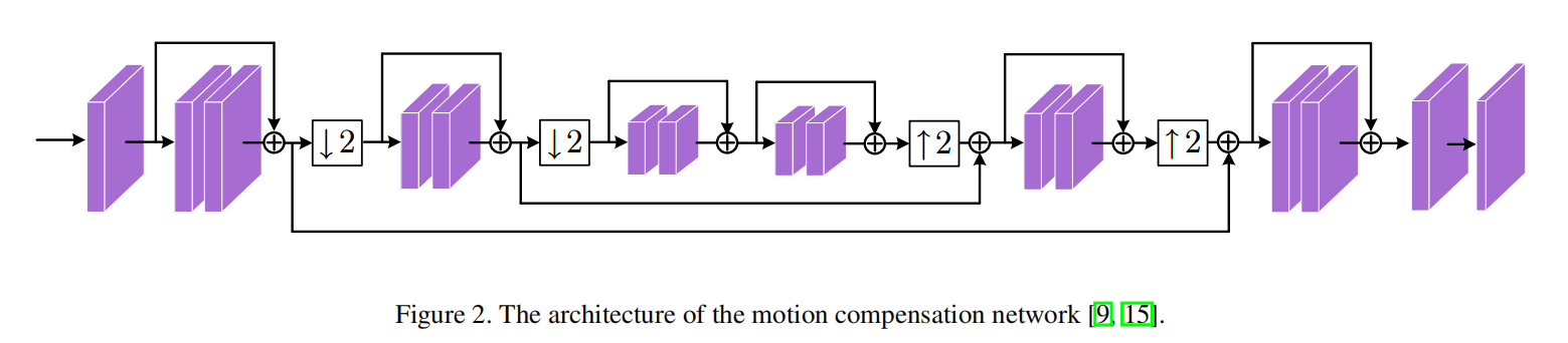 OpenDVC遵循了DVC设置的补偿网络架构,其详细的网络结构设计如下: