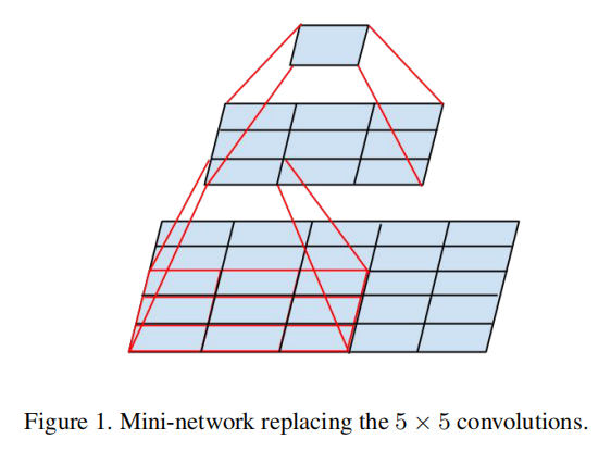 大尺寸卷积滤波器具有捕捉早期层中更远单元的激活之间的信号相关性的优点,不过其缺点在于高参数,计算耗时。一种分解方式是使用更小的卷积核网络来替代大卷积,这样能够有效减少参数数目,比如使用两个9/25=0.36