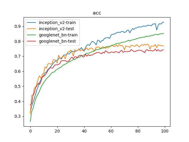 比对Inception_v2实现以及GoogLeNet_BN模型。训练参数如下: