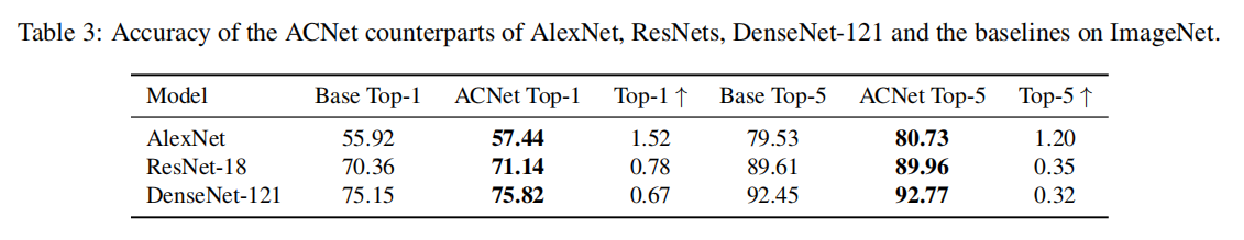 通过实验证明了ACB能够有效的在多个不同数据集(CIFAR10/CIFAR100/ImageNet)上提升模型(VGG/ResNet/WRN/DenseNet)性能