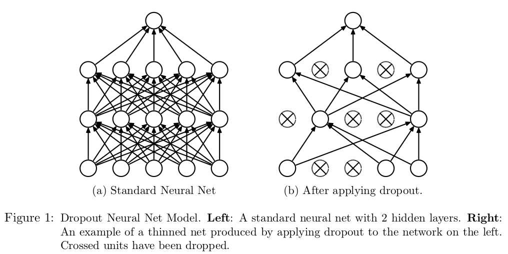 随时失活(dropout)是一种正则化方法,其动机来自于进化中的性别作用理论(a theory of the role of sex in evolution),它通过训练多个不同网络模型,模拟模型组合的方式来提高网络性能,防止网络过拟合