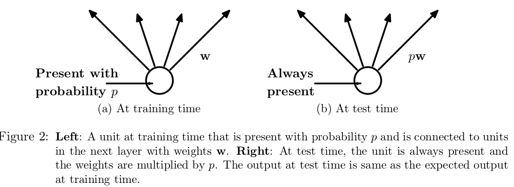假设原先隐藏层输出为 ,所以在预测阶段需要称以概率 ,最终值为