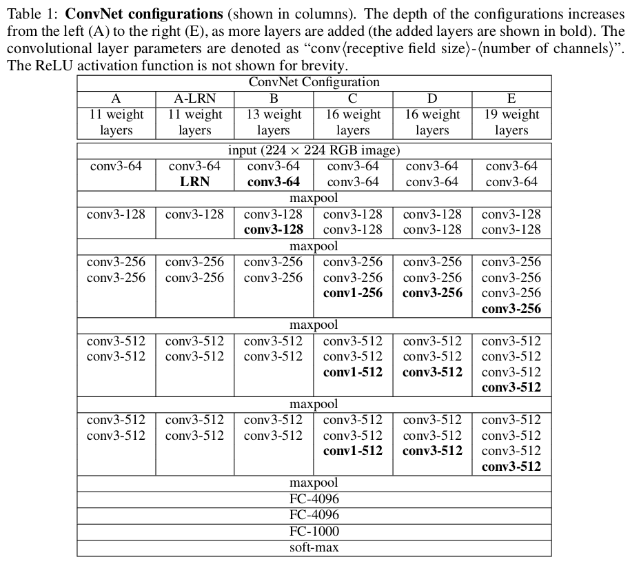 文章very deep convolutional networks for large-scale image recognition对卷积网络深度进行了详细研究,证明了增加模型深度能够有效提高网络性能,其实现的VGGNet在2014年ImageNet的定位(localisation)和分类(classification)比赛中获得第一和第二名