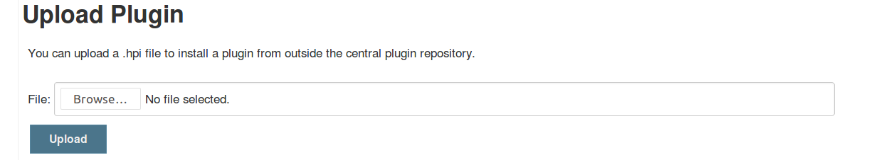 进入Manage Jenkins -> Manage Plugins -> Advanced,在Upload Plugin中上传插件