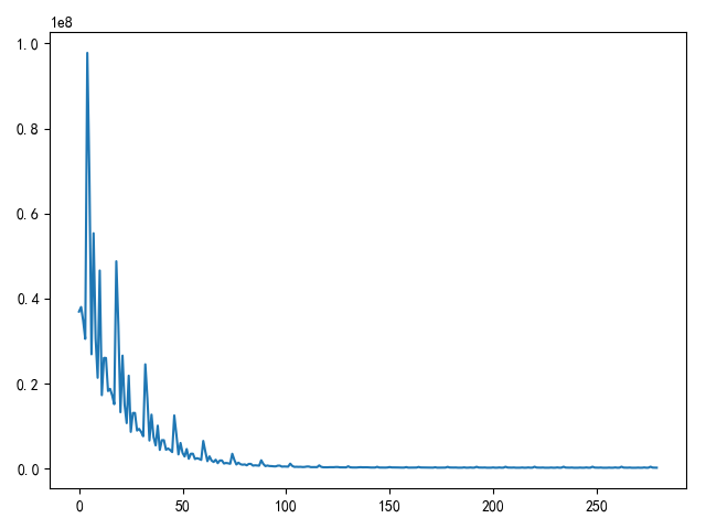 def draw_loss(loss_list): """ 绘制损失函数值 """ fig = plt.figure() plt.plot(loss_list)