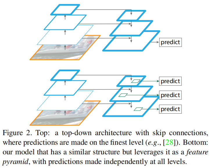 featurized image pyramids)到网络内部特征金字塔(in-network feature pyramids) - 介绍了特征金字塔网络的结构,包含了自下向上提取特征图(