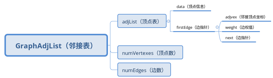 // 顶点表结点 typedef struct VertexNode { VertexType data; EdgeNode *firstEdge; } VertextNode;
