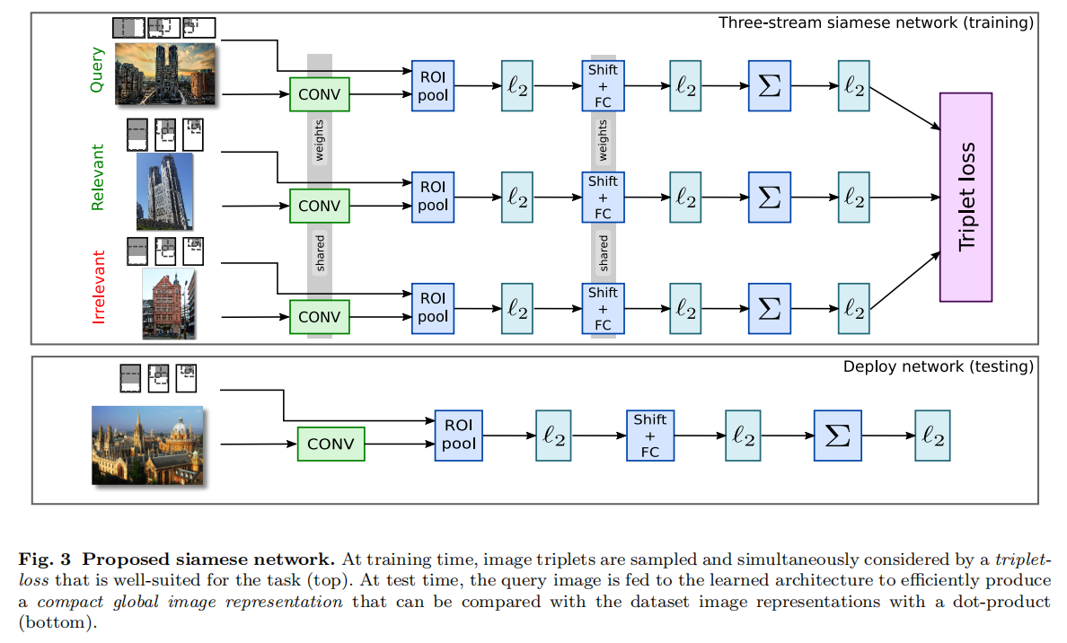 论文的创新:结合卷积网络以及全局特征描述符一起加入训练,同时针对特定检索任务进行微调训练。