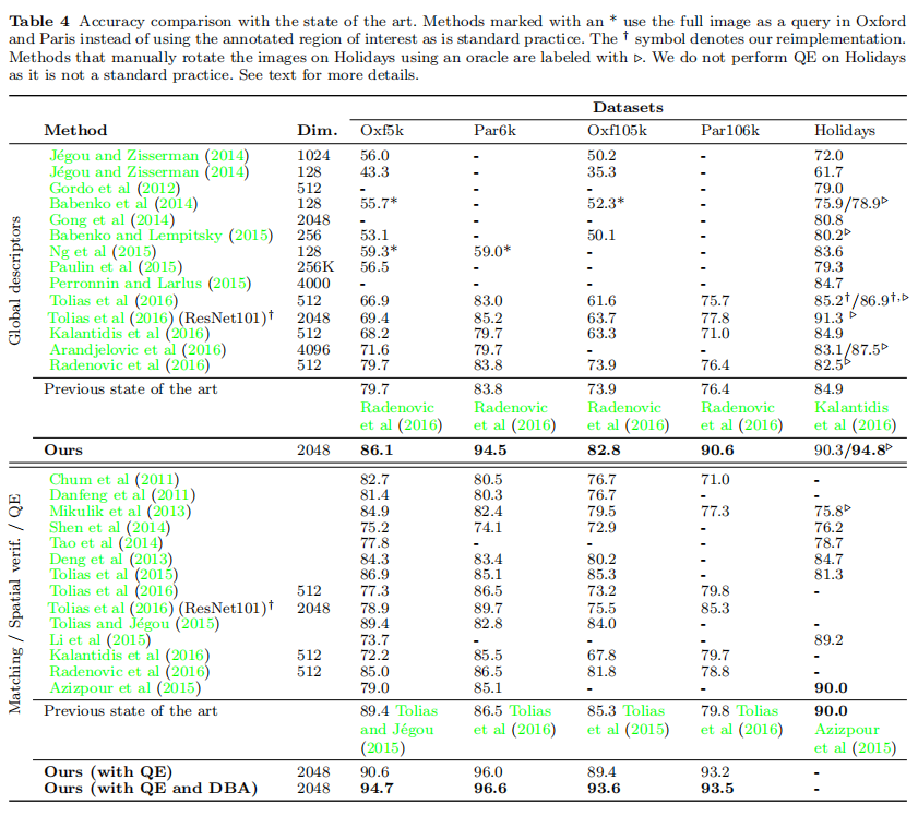 R-MAC的卷积网络进行微调检索训练(使用排序损失)能够获取最好性能; - 对于