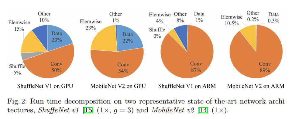 memory access cost, MAC)。对于包含大量卷积的操作而言(比如分组卷积), MAC的开销会占据运行时的很大一部分 - 模型并行度。在相同