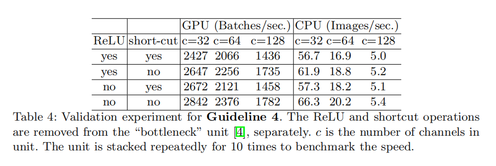 基于上述4条设计准则,推导出高效的网络应该包含以下实现: