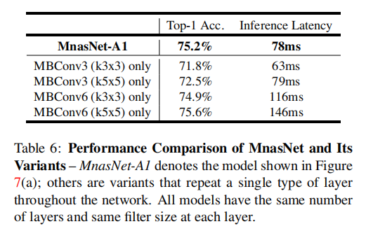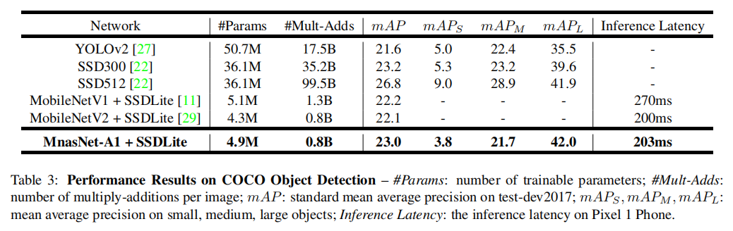 论文选择了前3个拥有不同延迟-性能权衡的MnasNet模型,与MobileNetV2进行比较