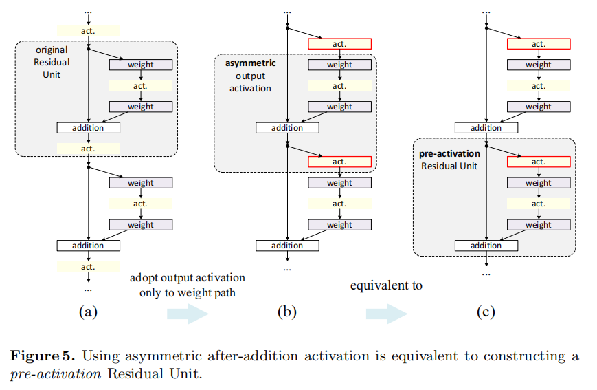 is asymmetrically adopted, it is equivalent to recasting as the pre-activation of the next Residual Unit. This is illustrated in Fig. 5.