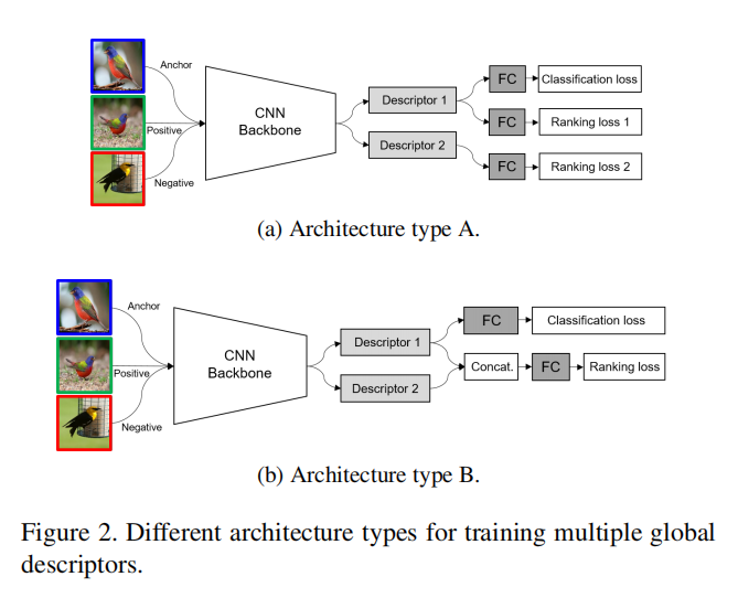 论文比较了组合全局描述符的不同方式,如下图所示: