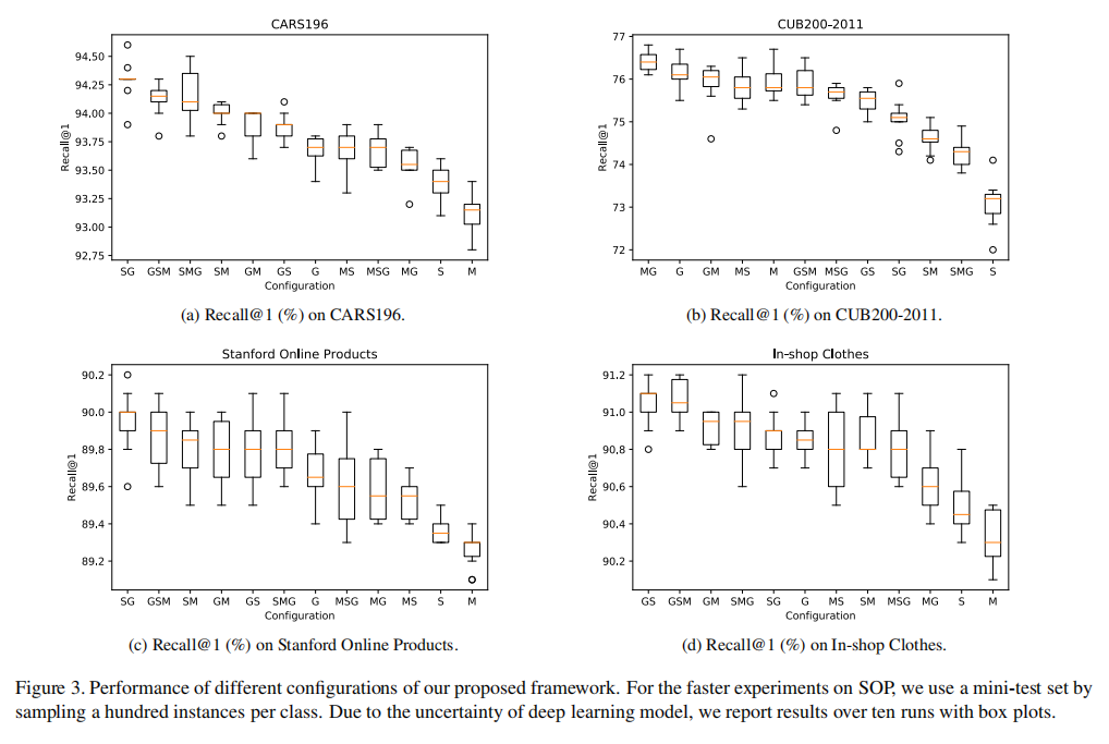 CARS196/CUB200-2011(CUB200)/Stanford Online Products(SOP)/In-shop Clothes(In-shop))上实现了最先进的性能。