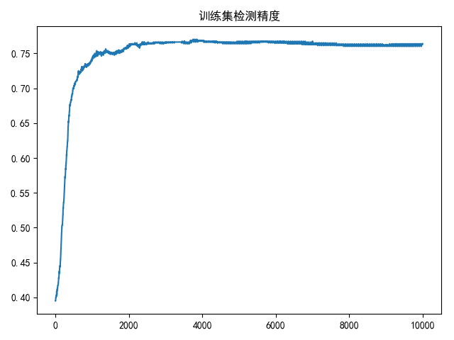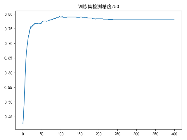 if i % 50 == 49: # 每个50次记录一次 # 计算精度 accuracy = compute_predict_accuracy(logistic_regression(w, train_data), train_label) accuracy_list.append(accuracy)