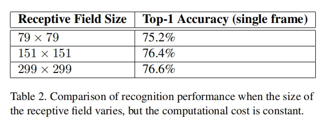 普遍的看法是,采用更高分辨率感受野的模型往往会显著提高识别性能。然而,区分第一层感受野的分辨率增加的效果和较大的模型容量和计算的效果是重要的。如果我们只是改变输入的分辨率而不进一步调整模型,那么我们最终会使用计算成本低得多的模型来解决更困难的任务。当然,很自然,由于计算量的减少,这些解决方案已经失败了。为了做出准确的评估,模型需要分析模糊的暗示,以便能够“得到”精细的细节。这在计算上是昂贵的。因此,问题依然存在:如果计算量保持不变,那么更高的输入分辨率有多大帮助。确保持续有效的一个简单方法是,在低分辨率输入的情况下,减少前两层的步长,或者简单地删除网络的第一个池化层