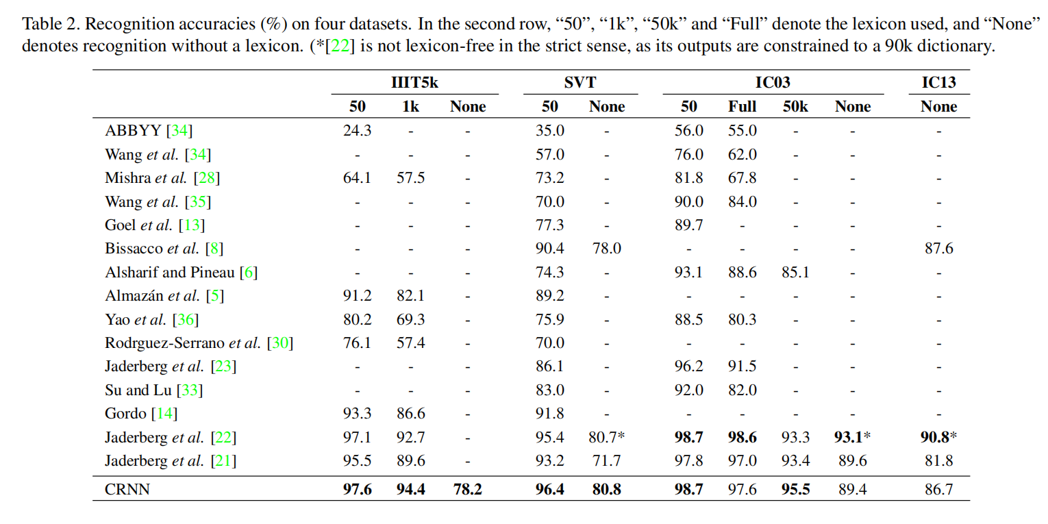 - 相比于之前的算法,CRNN在场景文本识别任务中实现了更好的性能;