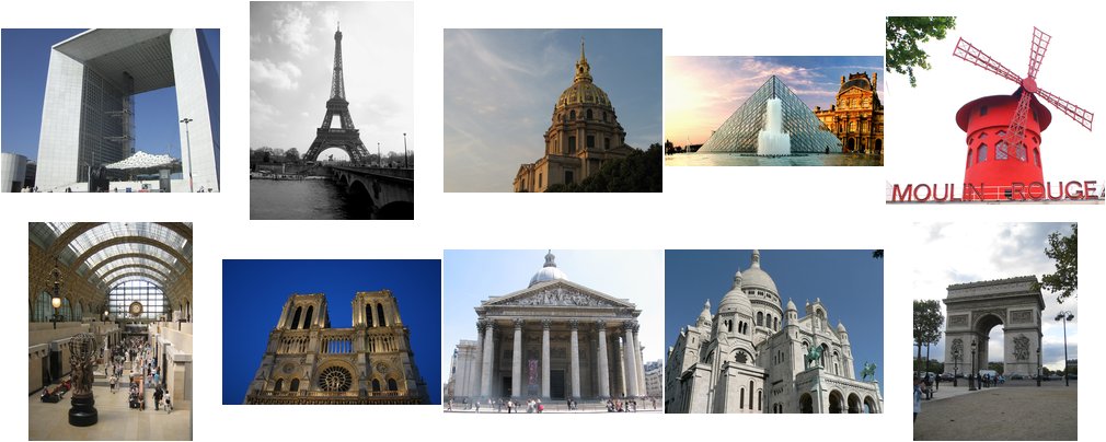 Paris6k同样是VGG组出品的地标检索数据集,包含了6412张图像,长宽为(1024, 768)。该数据集来自于Flickr ,收集了巴黎的12个建筑物。