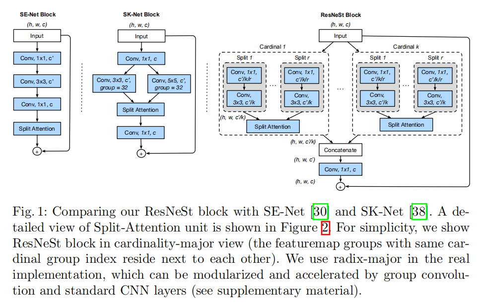ResNeSt统一了SENet和SKNet的架构实现: