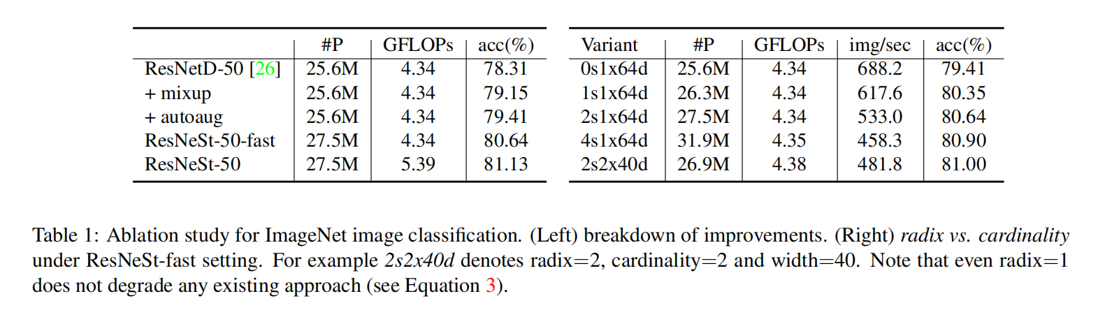 表示 radix表示 cardinality表示网络宽度( 表示标准残差块)