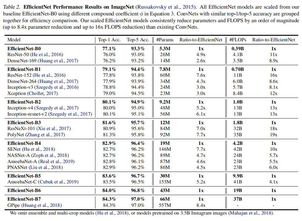论文首先针对已存在的卷积网络ResNet/MobileNet进行了复合放大,通过实验证明同时放大多个维度确实可以更好的提高模型性能