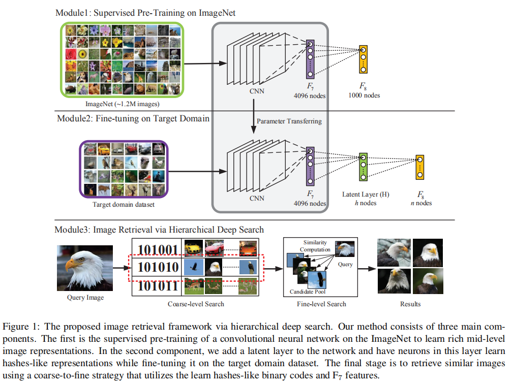 latent layer),使用目标数据集进行微调训练,同步学习特定域图像表示以及一组类哈希函数; - 构建分层深度搜索(