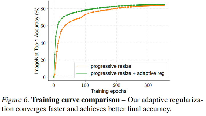 论文同时比较了训练曲线,可以发现自适应正则化允许更快的收敛。如下图6所示: