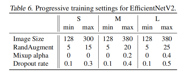 EfficientNetV2-M/L; - 加入渐进式学习,正则化强度随输入图像大小自适应调整,能够加速训练时间。