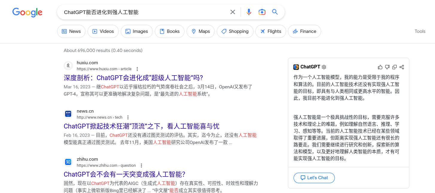 已经有小伙伴基于ChatGPT进行了二次开发,在Google浏览器上发布了插件ChatGPT for Google,可以嵌入到Google页面(百度页面也可以),同步展示Google搜索结果以及ChatGPT生成结果。