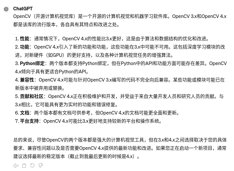 简单地说,除了更多的算法增加和性能增强以外,OpenCV 4.x对C++有更好的支持(减少对C的支持)。