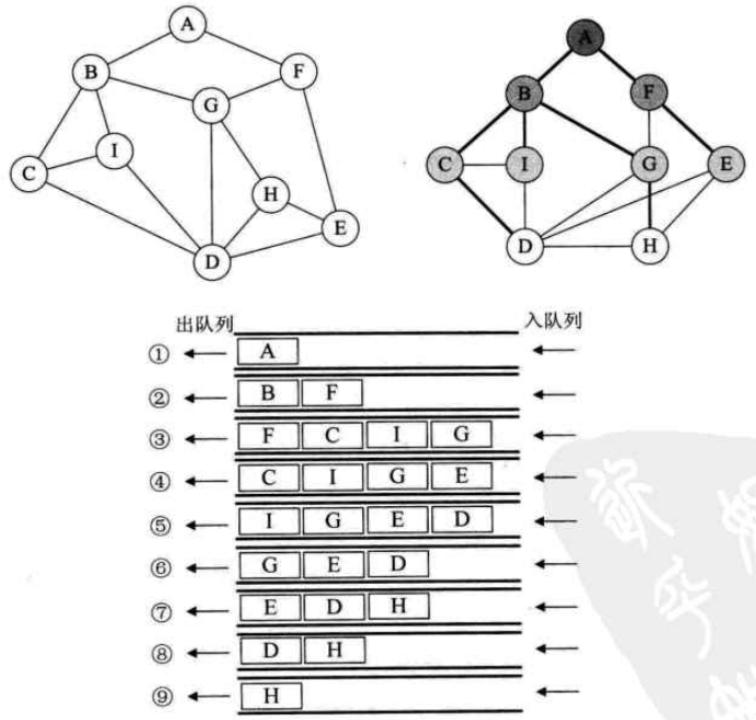 从图中某一顶点出发访遍图中其余顶点,且使每一个顶点仅被访问一次,这一过程称为图的遍历(traversing graph)