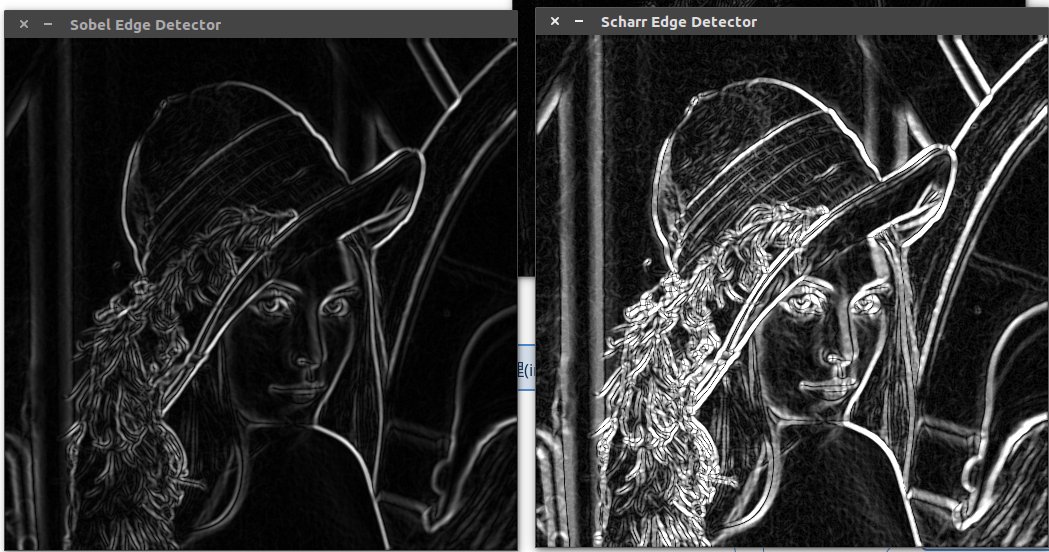 const string winname = "Scharr Edge Detector"; imshow(winname, grad); }