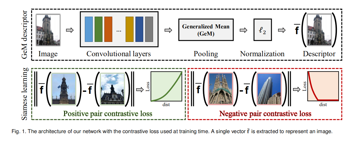 这篇论文扩展了CNN Image Retrieval Learns from BoW: Unsupervised Fine-Tuning with Hard Examples的工作,新增加了池化层GeM(generalized-mean)、基于多尺度的图像描述符构造以及一种新的查询扩展算法。