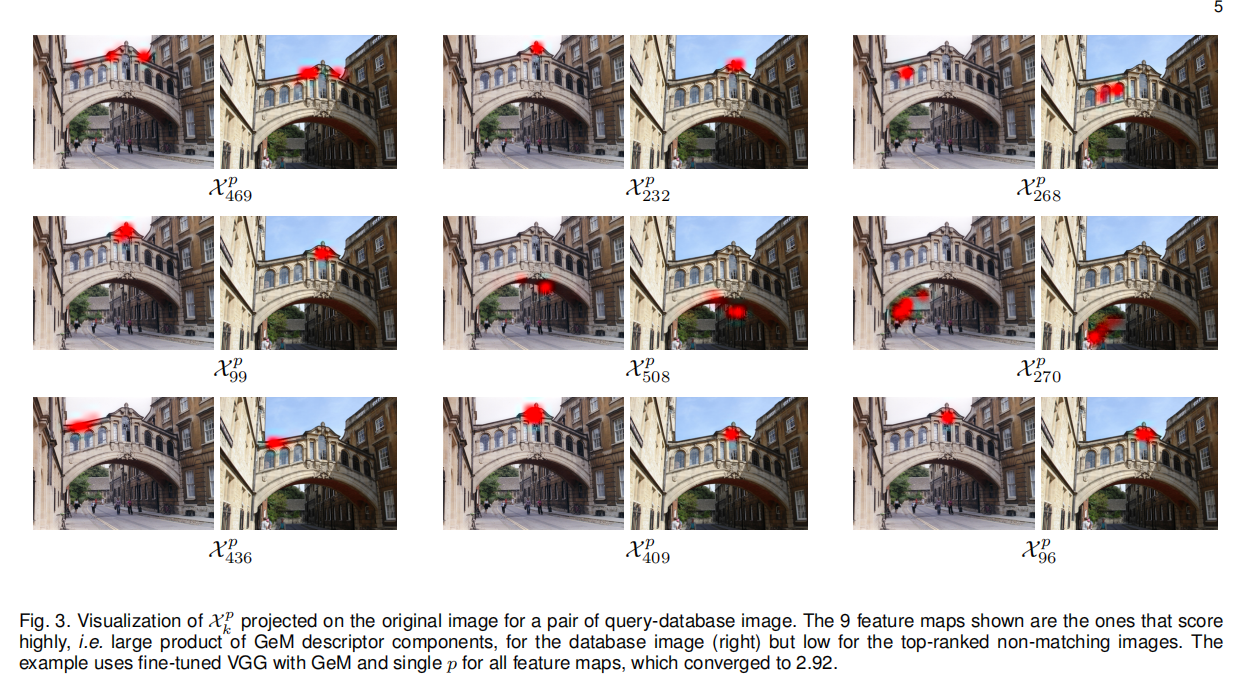 最后论文还显示了基于GeM进行微调训练后的特征向量匹配效果,如下图3所示(其实没看懂它的解释,反正就是好呗):