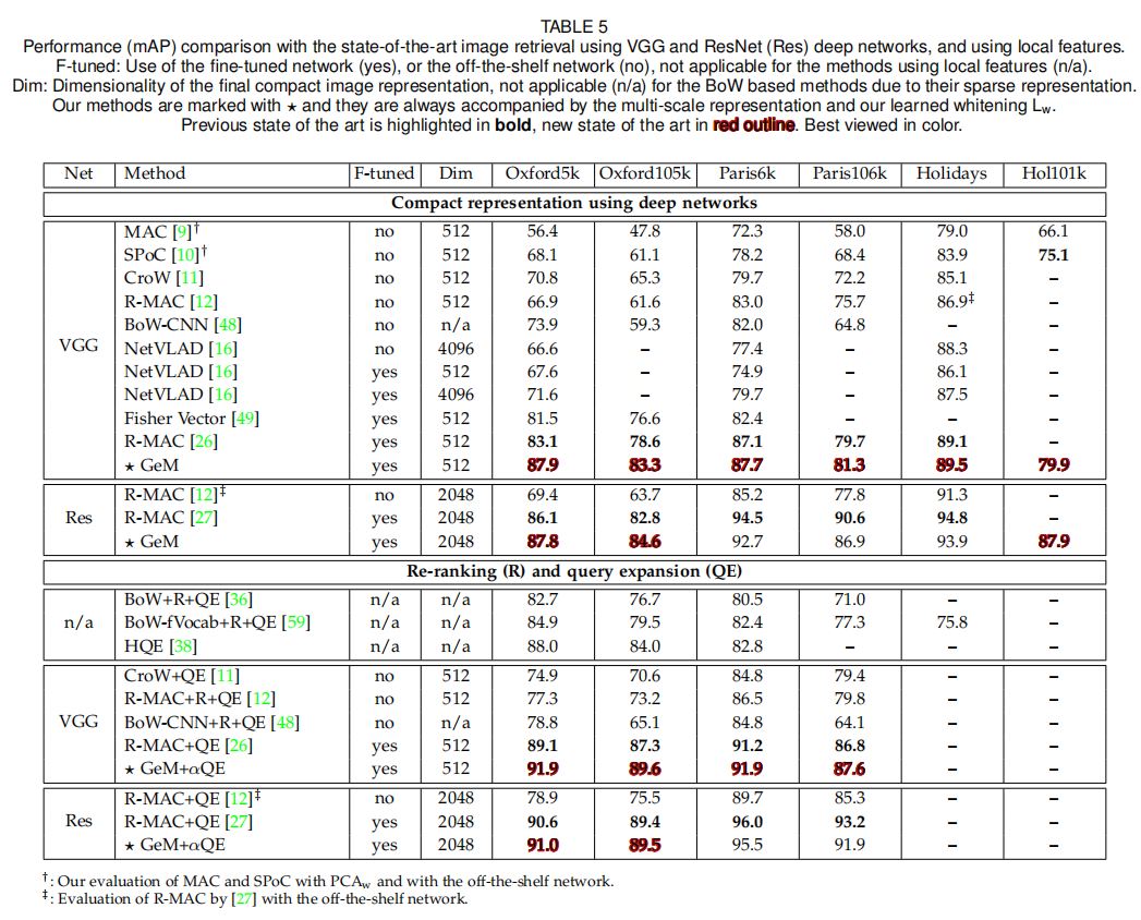 GeM; CNN描述符白化;- α-加权查询扩展算法