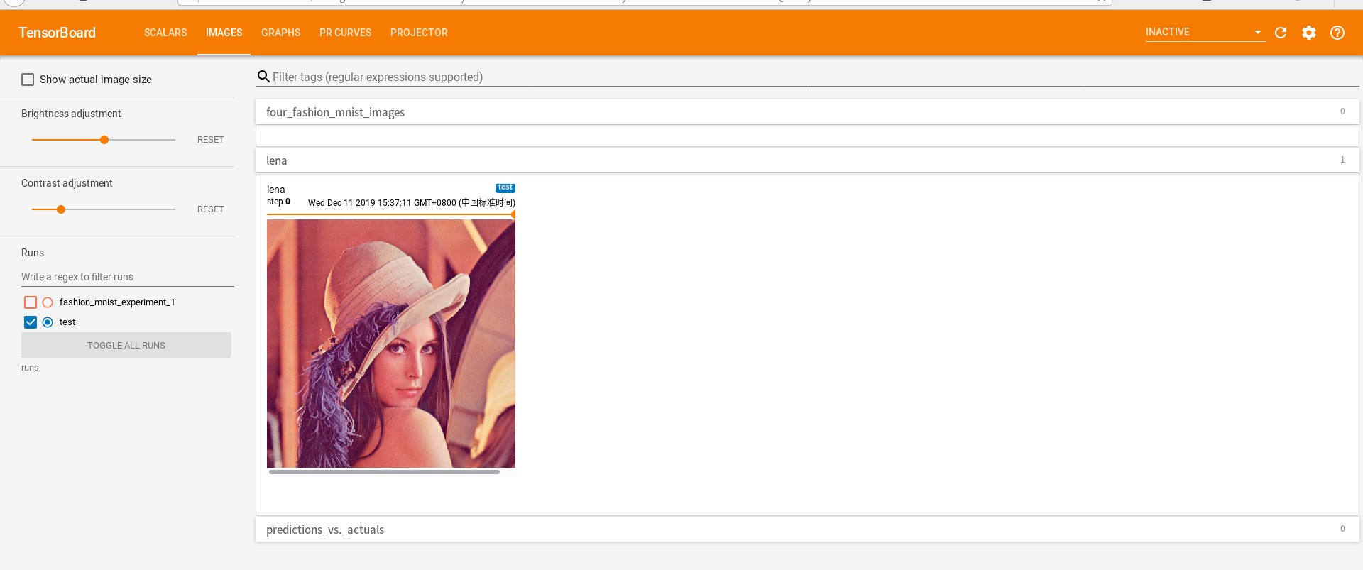 完成上述操作后,在tensorboard页面菜单栏选择IMAGES标签,会出现写入的lena图像