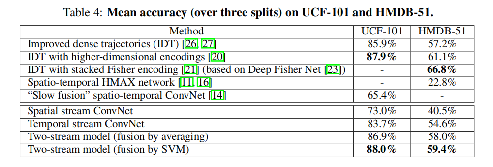 论文实现的模型在UCF-101和HMDB-51上得到了非常好的性能,它也大大超过了以前使用深度网络进行视频分类的实现结果。
